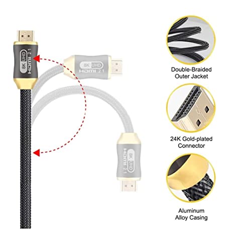 The 5-meter generous long HDMI cable makes it easy to use in a range of situations the braided cord is softer and sturdier than some other HDMI cable 2.1, making it easier to use. Backward compatible with earlier versions of HDMI 2.0 cable with the same HDMI connector it can be used with existing devices.